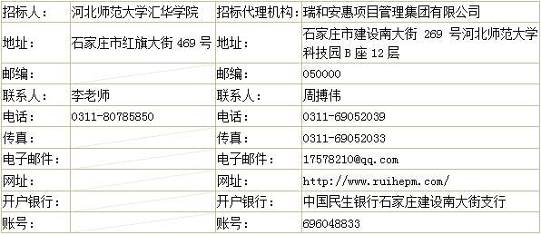 1.招标条件 本招标项目兴发个人中心登录通道2019新生运动服装采购已由/批准建设,项目业主为兴发个人中心登录通道,建设资金自筹,出资比例为100%,招标人为兴发个人中心登录通道。项目已具备招标条件,现对该项目进行公开招标。 2.项目概况与招标范围 采购内容:A包:运动服;B包:T恤衫、帆布鞋、棒球帽。 交货期:按招标人要求,保证学生军训期间的正常使用。 质量要求:符合国家质量验收标准。 标段划分:两个包。 采购方式为:公开招标。 3.投标人资格要求 3.1 投标人是响应招标、参加投标竞争的法人或者其他组织; 3.2 具有合法的经营范围且能够提供本项目供货和售后服务能力的生产厂家或代理商。 3.3本次招标不接受联合体投标。 4.招标文件的获取 4.1 凡有意参加投标者,请于 2019-5-17至 2019-5-23,每日上午 09:00时至 11:30 时,下午 14:00 时至 17:00时(北京时间,下同),惠招标电子招投标交易平台(www.hbidding.com)按要求上传报名资料并下载购买招标文件。 4.2 招标文件售价500元,售后不退。 5. 投标文件的递交 5.1 投标文件递交的截止时间(投标截止时间,下同)为2019-6- 6 09:30:00,地点为石家庄市建设南大街269号河北师范大学科技园B座12层第一会议室A面。 5.2 逾期送达的、未送达指定地点的或者不按照招标文件要求密封的投标文件,招标人将予以拒收。 6. 发布公告的媒介 本次招标公告同时在河北省招标投标公共服务平台、兴发个人中心登录通道网站上发布。 7. 联系方式