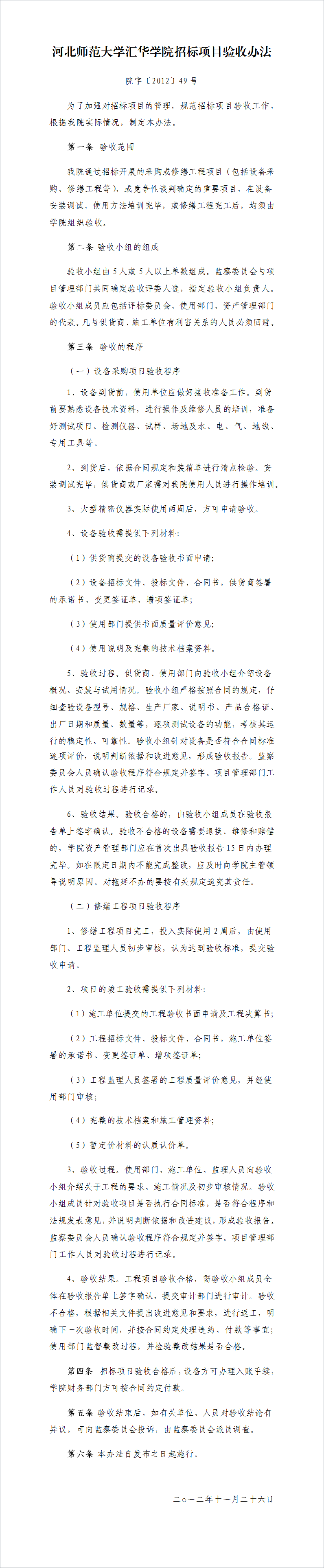 兴发个人中心登录通道招标项目验收办法