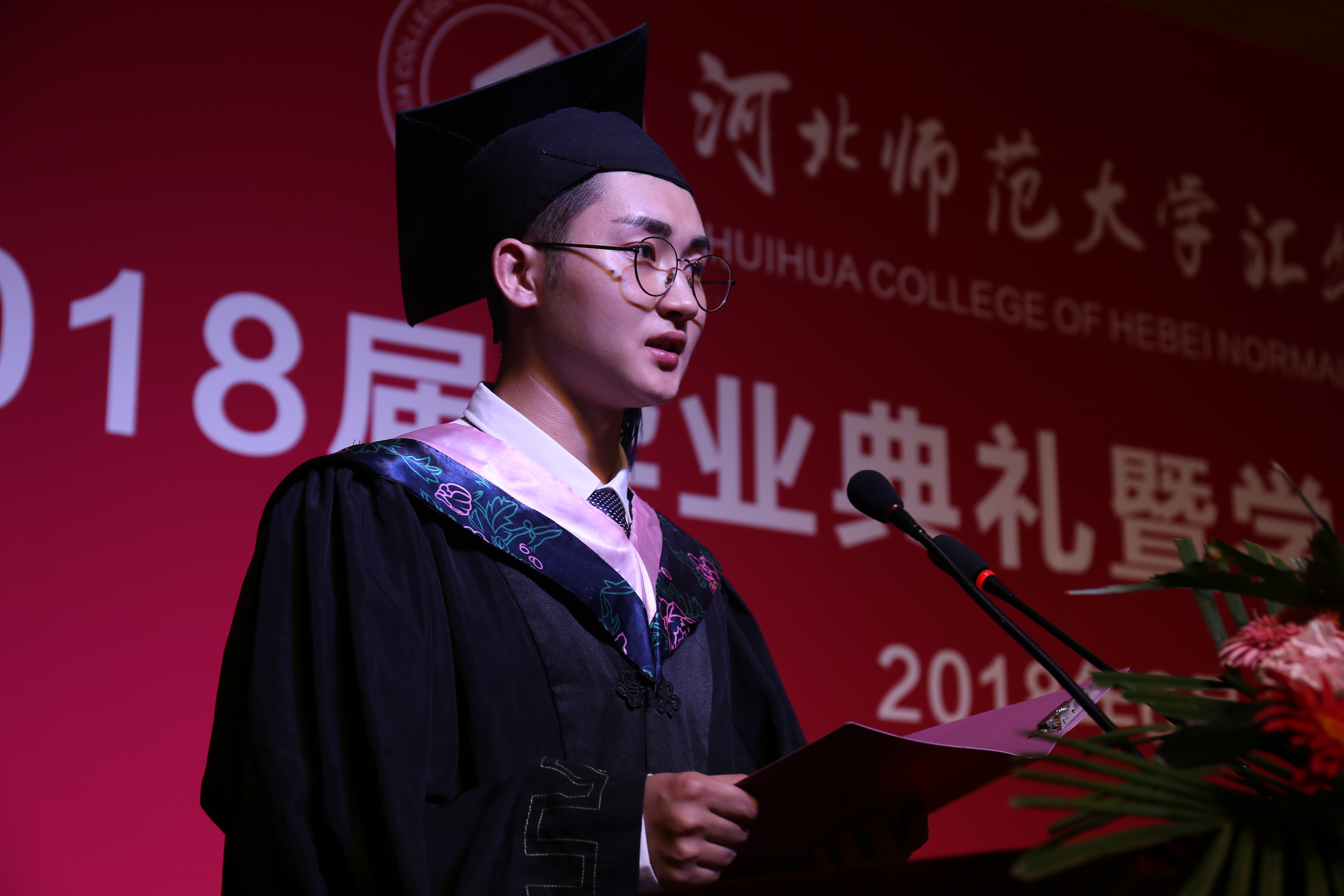毕业典礼在雄壮的国歌声中拉开序幕。学院领导向圆满完成学业,即将踏上新征程的2018届毕业生致以由衷祝贺和美好祝愿。在离别之际,他们在肯定毕业生大学四年所取得成绩的同时,提出了希望与要求:希望同学们志存高远,勇于奋斗,牢记习总书记对青年学生的寄语,坚定理想信念,顽强拼搏,担当起历史的重任,在实现自身梦想和实现中国梦的伟大实践中创造出自己精彩的人生;希望同学们躬身实干,脚踏实地,自强不息,在挑战和机遇中不断进步,在历练中成才;希望同学们终身学习,提升境界,要始终保持勇于攀登、锐意奋进的雄心壮志,向着自己的人生目标努力前进。