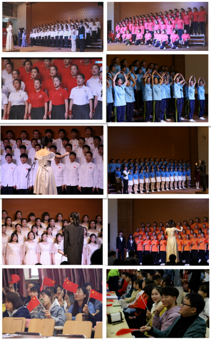 此次活动自9月9日筹备开始,各学部学生积极响应,纷纷组建了60-80人的大学生合唱队,艺术学部磬音合唱团为每个学部配备了声乐专业的高年级同学全程指导。他们利用课余时间认真准备,积极训练,每天都以热情饱满的状态、饱含深情的演唱、奋进嘹亮的歌声向祖国表达崇高的敬意,为中华人民共和国成立70周年献上最真挚的祝福。活动现场,8个学部的学生合唱队依次展示,用嘹亮歌声,点亮中国红,同聚中国心,唱响祖国赞歌。外语学部的《国家》以手语伴唱与青春合唱融合,充分表达着“国是千万家”的中国信仰,演唱结束展示的巨幅国旗引起了在座同学的阵阵掌声;理学部的《歌唱祖国》唱响“站起来、富起来、强起来”的伟大跨越;传媒学部演唱的《复兴的力量》表达出了中华儿女对美好生活的向往和对祖国的热爱之情;艺术学部带来的《我和我的祖国》表达着对祖国的浓郁挚爱之情;经济管理学部以一曲《走向复兴》传递了中华民族走出民族复兴和期盼国家富强的热切愿望;工学部的《强军战歌》铿锵有力、热血沸腾;文学部选择的《今天是你的生日,中国》唱响了对祖国生日的深深祝福;教育法政学部以《我和我的祖国》表达对伟大祖国的衷心依恋。